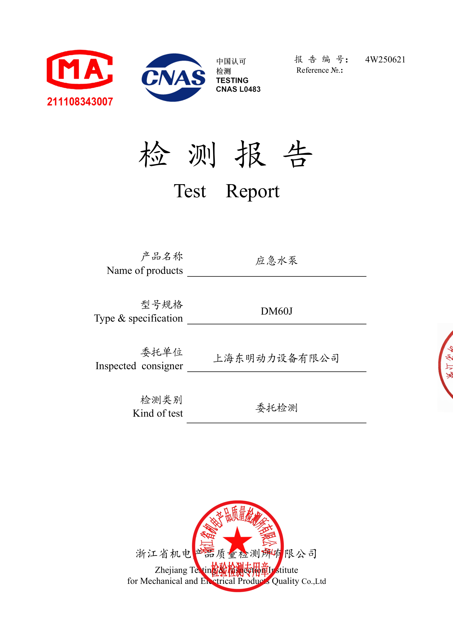 除了出色的性能表現,上海東(dōng)明 DM60YJ 汽油水(shuǐ)泵還具備專業檢測報(bào)告,各項指(zhǐ)標符合國家相(xiàng)關標準。從動力性能(néng)到安全防護,都經過嚴格測試驗證,確保設備在(zài)應急使用中的安全性、可靠性和穩定性。檢測報告的加持,也(yě)為用戶在政府(fǔ)采購、應急儲備等場景中提供了依據。
