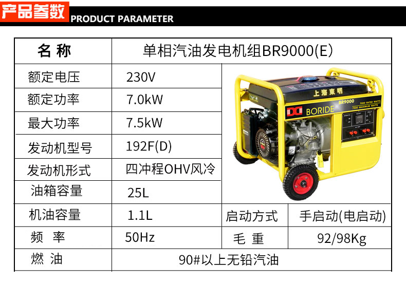 * 表示必填采(cǎi)購:單相7kW小(xiǎo)型汽(qì)油發電機組 BR9000(E)
