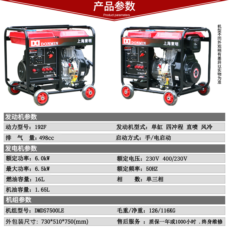 * 表示(shì)必填采購:單三相6kw柴油(yóu)發電機 DMDS7500LE