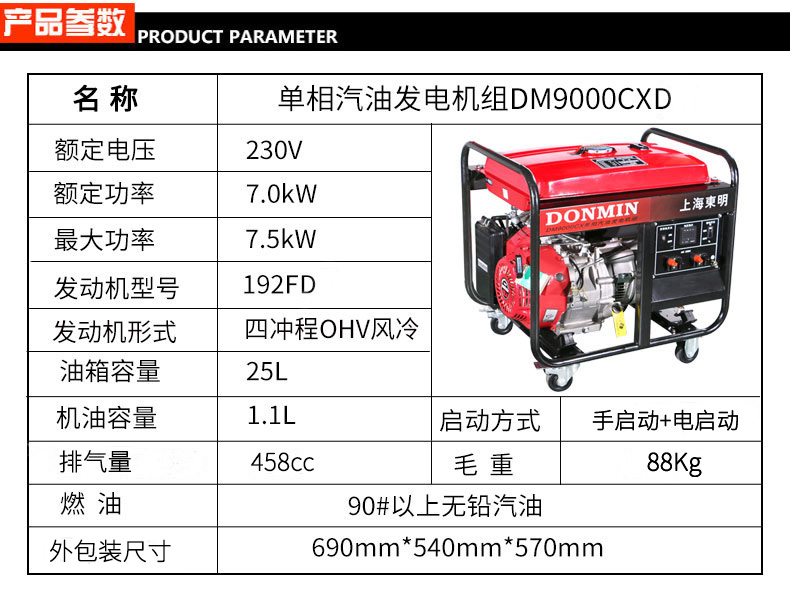 * 表示必填采購:單相7kW小型汽油發電(diàn)機組(zǔ)DM9000CXD