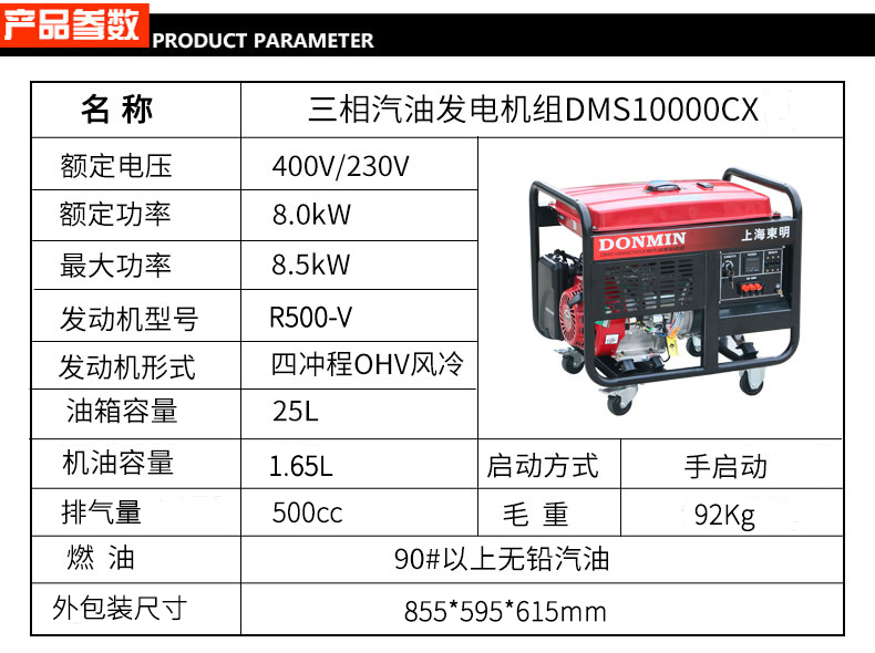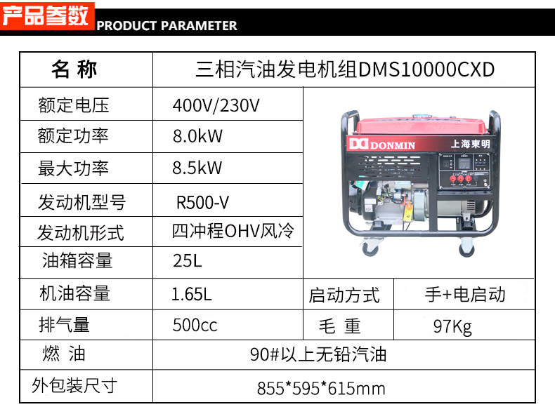 三(sān)相8KW汽油發電機 DMS10000CX/D